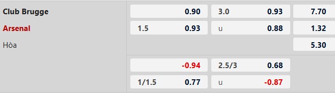 Club Brugge thắng châu Á hiệp 1: 3 trận sân khách gần đây chứng kiến Arsenal thua châu Á ngay trong hiệp 1. Với Club Brugge, đội bóng Bỉ đang nhập cuộc chủ động trên sân nhà tại Champions League, đánh bại Barca, Monaco và Rangers ngay hiệp đầu tiên.