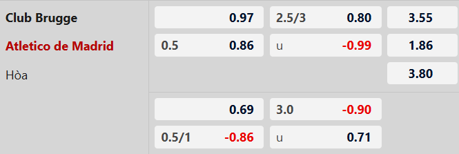 Lẻ bàn thắng: Cả 7 trận đấu gần đây của Club Brugge đều kết thúc lẻ bàn thắng. Tình trạng tương tự xảy ra ở 5/7 trận gần nhất của Atletico.
