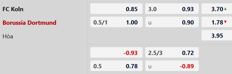 Phong độ của Dortmund đang nhỉnh hơn Cologne. Chưa hết, Cologne cũng ngần ngại khi đối đầu với Dortmund ngay trên sân nhà. Nhiều khả năng, 3 điểm sẽ đến với đội khách.