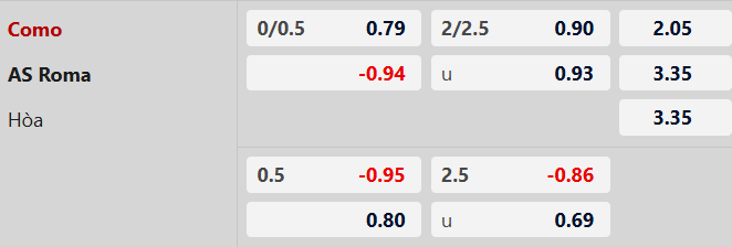 2/3 lần đối đầu gần đây giữa hai đội có ít hơn 3 bàn. 3/5 trận gần đây của Como và 3/5 trận gần nhất của Roma có tối đa 2 bàn. Roma thường chơi phòng ngự phản công trên sân khách, nhưng hiện tại họ mất nhiều ngôi sao tấn công, vì thế khả năng ghi bàn của đội khách là không hề dễ dàng. Còn với Como, dù được đánh giá sẽ giành 3 điểm, nhưng khả năng họ ghi nhiều hơn 2 bàn vào lưới đội khách cũng là chuyện không hề đơn giản.