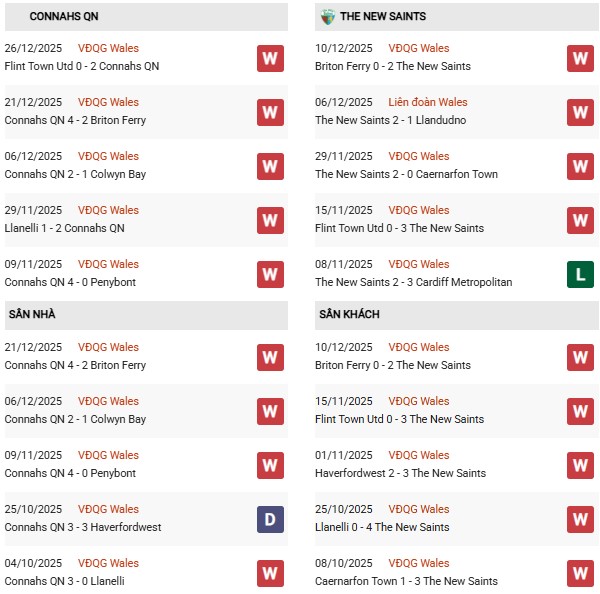 Phong độ gần đây của đội chủ nhà đặc biệt ấn tượng khi thắng tới 8, hòa 1 và chỉ thua 1 trong 10 trận gần nhất. Tuy nhiên, trên sân nhà, Connahs Quay chưa duy trì được sự áp đảo tuyệt đối khi thắng 5, hòa 2 và thua 3 trong 10 trận gần đây. Dù vậy, điểm mạnh lớn nhất của họ vẫn là lối chơi tấn công hiệu quả, thường xuyên tạo ra các trận đấu có nhiều bàn thắng.