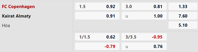 Copenhagen thua theo châu Á: Copenhagen đã thua 8/10 trận gần nhất theo châu Á. Cũng theo tiêu chí này, đại diện Đan Mạch thua 5/6 trận sân nhà vừa qua. Nhiều khả năng họ cũng lại thua theo châu Á ở cuộc đón tiếp Kairat Almaty lần này.