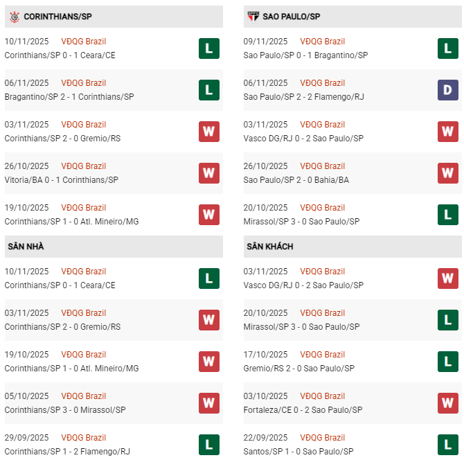 - Sao Paulo thắng 6 thua 2 và hòa 2 trong 10 lần gần nhất chạm mặt Corinthians.