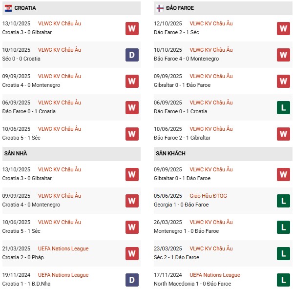 Tối đa 1 bàn hiệp 1: 5 trận gần nhất của Croatia đều chỉ xuất hiện nhiều nhất 1 bàn thắng trong hiệp 1. Tình trạng tương tự xảy ra ở 10/11 trận vừa qua của Đảo Faroe. Trận lượt đi giữa 2 đội tại vòng loại World Cup 2026 cũng chỉ có 1 bàn hiệp 1.