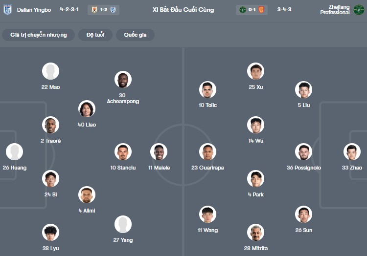 DỰ ĐOÁN: Dalian Yingbo 2-1 Zhejiang