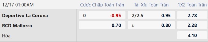 Ở chiều ngược lại, Mallorca hành quân đến sân Riazor với tâm thế của đội cửa trên. Đại diện La Liga đang duy trì sự ổn định cả về lối chơi lẫn tinh thần, đặc biệt là sau những kết quả tích cực gần đây tại giải quốc nội. Kinh nghiệm chinh chiến ở môi trường đỉnh cao giúp Mallorca biết cách kiểm soát thế trận, chơi chặt chẽ và tận dụng tốt những khoảnh khắc quyết định, yếu tố rất quan trọng ở các trận đấu cúp mang tính loại trực tiếp.