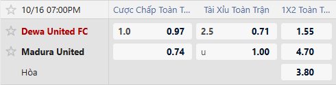 Cột mốc tài xỉu hạ từ 2 3/4 xuống 2 1/2 cho thấy niềm tin lớn dồn vào cửa Xỉu. Madura thi đấu khá thực dụng trong thời gian qua khi có 4/5 trận đấu gần đây có ít bàn thắng. Họ có thể tử thủ để chống lại Dewa United.