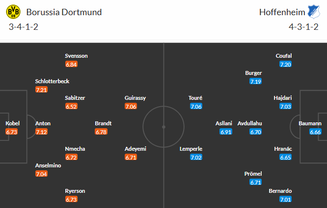 Hai đội cùng ghi bàn: 7/10 cuộc đối đầu gần nhất, 9/13 trận gần đây của Dortmund và 5/6 trận chính thức vừa qua của Hoffenheim đều khép lại với ít nhất 1 bàn thắng cho mỗi đội. Ngoài ra, Dortmund luôn ghi bàn ở 13/14 trận sân nhà gần đây và 6/7 chuyến làm khách vừa qua của Hoffenheim đều khép lại mà không đội nào giữ sạch lưới nhà.