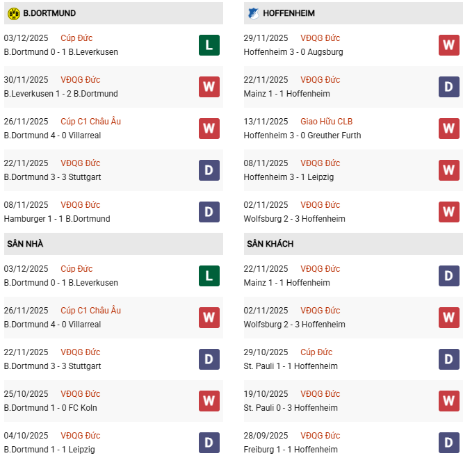 Kể từ sau thất bại tại sân chơi danh giá thứ hai của Đức, Hoffenheim đã có phong độ đáng kinh ngạc trong suốt tháng 11. Họ đã trở lại mạnh mẽ với chiến thắng trước Wolfsburg (3-2) và Leipzig (3-1) trước khi bị Mainz cầm hòa 1-1 ở những phút cuối. Trận thắng 3-0 trước Augsburg cuối tuần trước đã khép lại chuỗi 7 trận tuyệt vời của Hoffenheim (5 thắng, 2 hòa). Và phong độ ấy đủ để gây ra nhiều sóng gió cho đội chủ nhà ở chuyến làm khách tại Signal Iduna Park đêm Chủ nhật này.