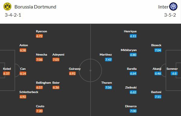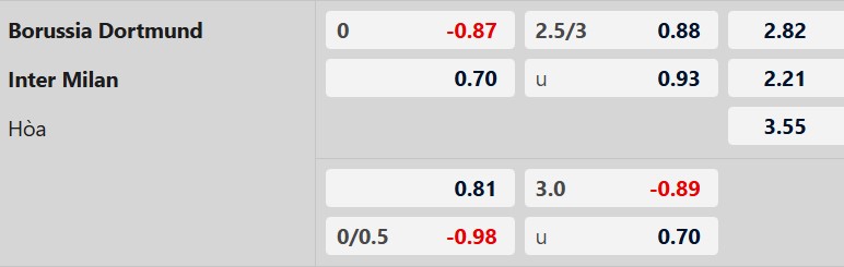 Hiệp 1 không quá 1 bàn: 5/7 trận gần nhất của Dortmund và 5/8 trận vừa qua của Inter Milan đều có không quá 1 bàn thắng trong hiệp 1. Không những thế, kịch bản tương tự trong hiệp 1 cũng xảy ra ở 6/7 trận sân nhà gần đây của Dortmund và 5/6 chuyến làm khách vừa qua của Inter.