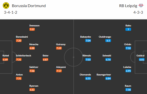 Với những gì đã thể hiện trong thời gian qua, màn so tài sắp tới giữa Dortmund và RB Leipzig sẽ rất đáng được chờ đợi. Dù RB Leipzig đang vượt trội về thành tích đối đầu khi giành tới 4 chiến thắng và chỉ phải nhận 1 thất bại ở 5 lần chạm trán gần nhất nhưng Dortmund lại có lợi thế được thi đấu tại thánh địa Signal Iduna Park, nơi họ đã toàn thắng ở 3 trận đấu đầu tiên của mùa giải năm nay. Dù các vị khách cũng có phong độ ấn tượng ở thời điểm hiện tại, nhưng khả năng họ phải trắng tay ra về sẽ là lớn hơn sau màn so tài sắp tới.