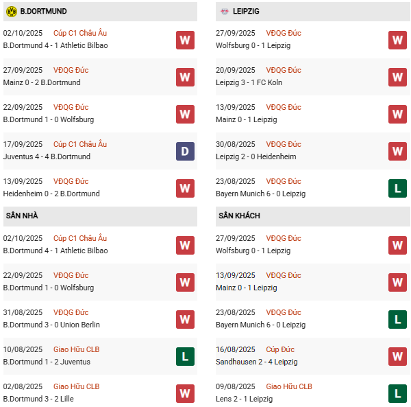 - Trên sân nhà, Dortmund thắng 5, thua 3 trước RB Leipzig.