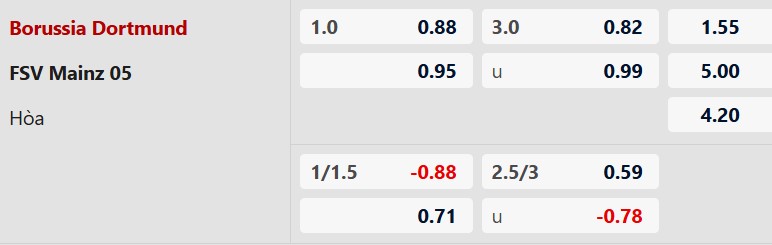 Thông tin tỷ lệ kèo bóng đá Dortmund vs Mainz: