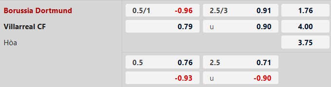 Tối đa 1 bàn trong hiệp 1: 6/8 trận chính thức sân nhà gần nhất của Dortmund có tối đa 1 bàn trong hiệp 1. 13/15 trận vừa qua của Villarreal cũng chung kịch bản.