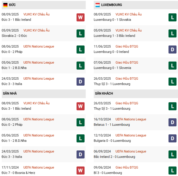 Về phần đối thủ Luxembourg, phong độ hiện tại cũng chẳng khá hơn. Bởi lẽ, đoàn quân của Jeff Strasser nhận 2 thất bại liên tiếp trước Bắc Ireland và Slovakia ở vòng loại World Cup 2026. Dù vậy, Luxembourg không hề dễ bị bắt nạt. Một tấm thẻ đỏ giữa hiệp hai khiến họ đánh rơi điểm trong trận mở màn, còn ở lượt trận thứ hai, đội tuyển nhỏ bé này chỉ chịu thua Slovakia vì bàn thắng ở phút cuối.
