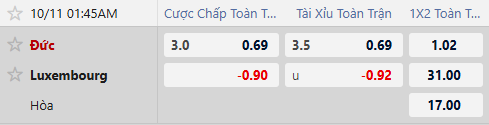 Trong thời gian gần đây, Đức không còn giữ được sự chắc chắn nơi hàng thủ, nhưng bù lại họ vẫn là đội có khả năng ghi từ 2 đến 3 bàn vào lưới hầu hết mọi đối thủ. Ở chiều ngược lại, Luxembourg vẫn chưa thể cải thiện khả năng phòng ngự khi để lọt lưới 8 bàn trong 5 trận gần nhất. Với mức kèo Tài Xỉu 3 1/2, lựa chọn cửa Tài rõ ràng là nên được theo cược.