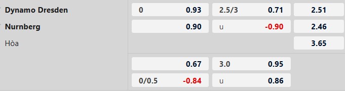 Có lợi thế sân nhà nhưng Dynamo Dresden lại không được đánh giá cao hơn đối thủ. Trận đấu này được giới chuyên gia niêm yết mức kèo hòa được thua. Nurnberg chưa từng thua trên sân Dynamo Dresden và với phong độ hiện tại, thành tích đó có thể được nối dài.