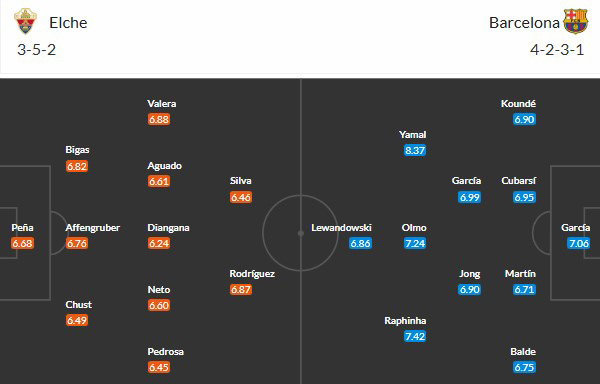 Barcelona đang khẳng định vị thế của một cỗ máy tấn công thượng hạng với tổng cộng 57 bàn thắng, đạt hiệu suất trung bình lên tới 2.7 bàn/trận. Con số này phản ánh sự áp đảo hoàn toàn so với Elche, đội bóng mới chỉ có được 29 pha lập công với hiệu suất khiêm tốn 1.4 bàn/trận. Vì vậy, có thể đặt niềm tin vào cửa Tài cùng thắng lợi cách biệt của Barca.