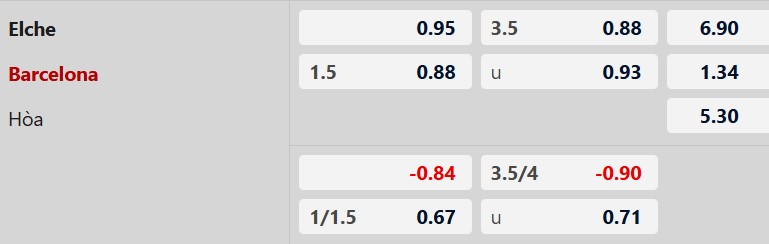Barcelona thắng châu Á: Chuyến làm khách mùa trước Barca cũng nhường Elche 1 1/2 trái như trận này và thắng tưng bừng 4-0. Trước một Elche chỉ thắng châu Á 1/5 trận vừa qua, một Barca thắng châu Á 7/9 trận vừa qua khả năng sẽ mang niềm vui cho các nhà đầu tư.