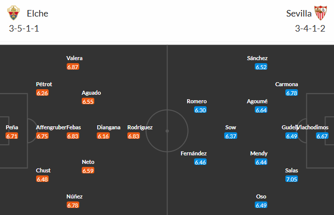 Lưới rung cuối trận: Cả 4 trận vừa qua của Elche đều có bàn thắng được ghi trong 10 phút cuối. 5/6 trận gần nhất của Sevilla cũng diễn ra theo kịch bản này.