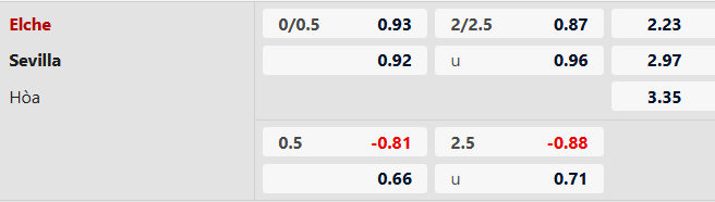 Elche thắng theo châu Á: Elche thắng theo châu Á ở 3/4 trận gần nhất được tiếp đón các đối thủ. Thực tế trên cộng với việc Sevilla thua theo châu Á 3/4 trận vừa qua là lý do các nhà đầu tư nên ủng hộ đội chủ nhà.