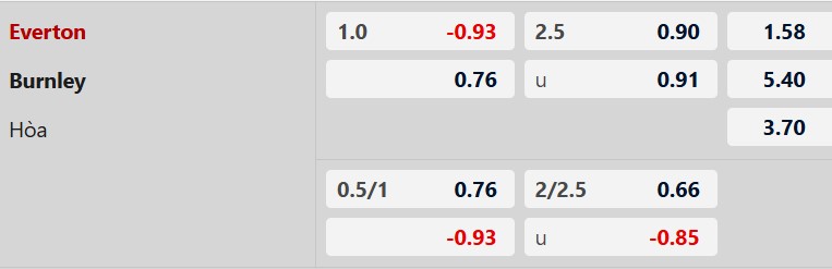 Burnley đang thiếu vắng rất nhiều cầu thủ vì chấn thương, lại phải làm khách nên đây là cơ hội để Everton giành chiến thắng theo châu Á. Không đội nào giữ sạch lưới nhà và kết cục lẻ bàn thắng là những kịch bản rất dễ xảy ra ở trận này.
