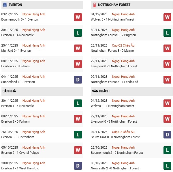 - Trên sân nhà, Everton thắng 1, thua 1 trước Nottingham.