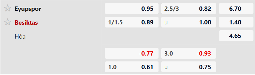 Trong khi Besiktas đang thắng như chẻ tre, thì Eyupspor chưa biết đến bao giờ mới cắt được chuỗi trận chỉ biết đến hòa và thua. Với đẳng cấp và phong độ hoàn toàn vượt trội, nhiều khả năng Besiktas sẽ lại một lần nữa khiến Eyupspor phải nhận kết cục buồn.