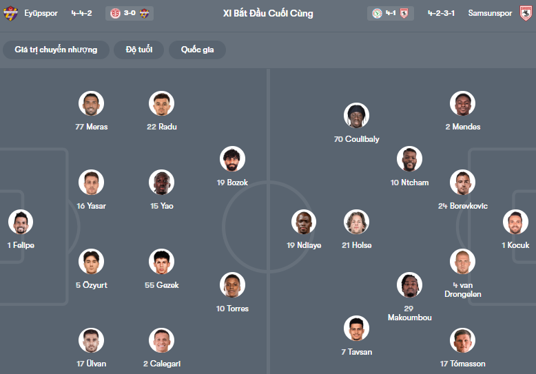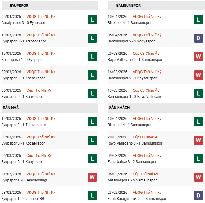 - Eyupspor thắng 1, hòa 3, thua 6 trong 10 trận gặp Samsunspor gần đây.