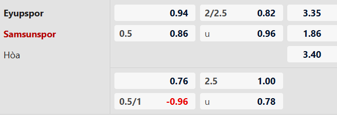 Lựa chọn tốt nhất: Samsunspor -1/2 cả trận