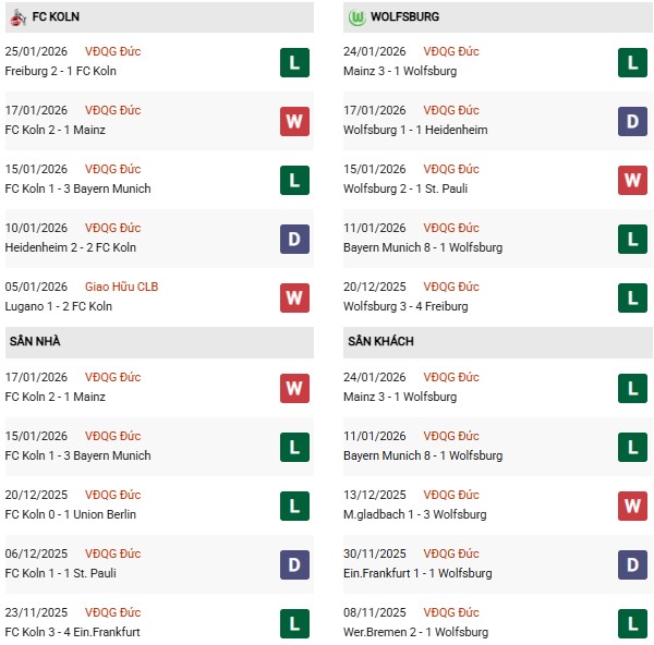 - Trên sân nhà, FC Koln thắng 3, thua 4 trước Wolfsburg.