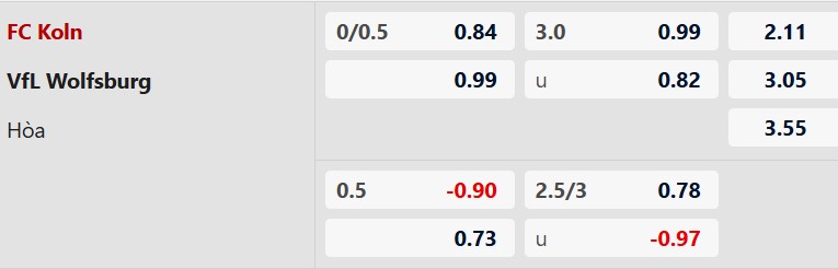 - FC Koln thắng 2, hòa 3, thua 5 trong 10 trận gặp Wolfsburg gần đây.