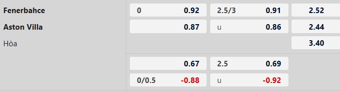 Với những lợi thế nhất định về phong độ, thành tích thi đấu và đặc biệt là sân nhà, nhiều khả năng Fenerbahce sẽ thắng theo châu Á khi đón tiếp Aston Villa. Hơn nữa, hai đội cùng ghi bàn và có nhiều bàn thắng cũng là những kịch bản dễ xảy ra nhất ở trận này.