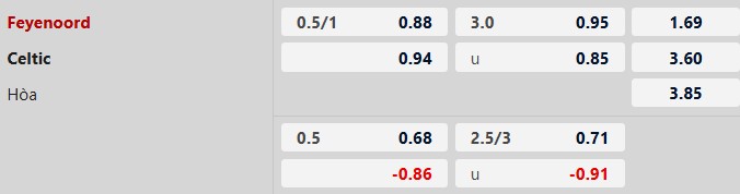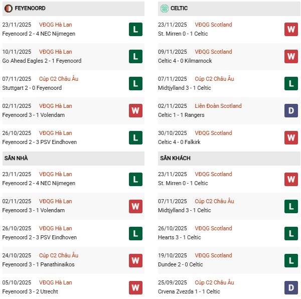 - Trên sân nhà, Feyenoord thắng 1, thua 1 trước Celtic.