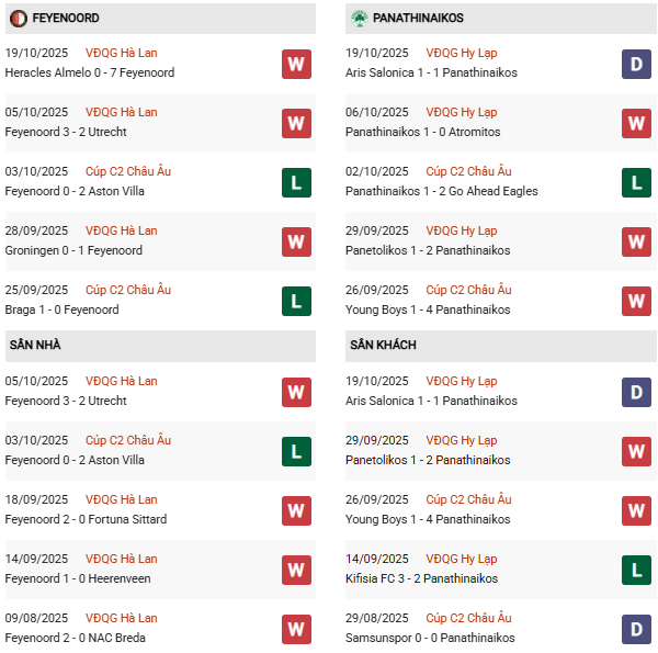 DỰ ĐOÁN: Feyenoord 2-2 Panathinaikos