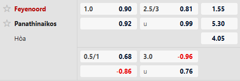 Dù có phong độ châu Âu rất tệ (0 điểm, 0 bàn), Feyenoord vẫn là đội cửa trên nhờ lợi thế sân nhà và phong độ hủy diệt ở Eredivisie. Tuy nhiên, Panathinaikos với 5 bàn thắng đã ghi sau 2 trận ở Cúp C2 sẽ là đối thủ cực kỳ nguy hiểm. Mức chấp sẽ được giảm đáng kể so với dự đoán ban đầu. Chọn Panathinaikos.