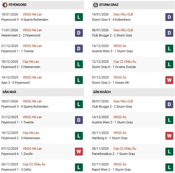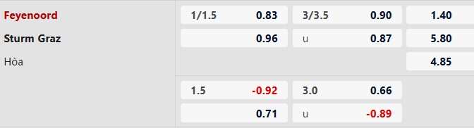 - Feyenoord thắng 1, thua 1 trong 2 trận gặp Sturm Graz gần đây.