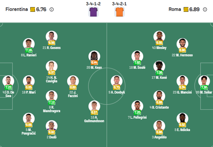 Lần này, Roma đến sân của Fiorentina với mục tiêu tiếp nối khởi đầu ấn tượng của mùa giải, trong đó nổi bật là việc đánh bại Lazio trong trận Derby della Capitale. Sau đó, đoàn quân của Gian Piero Gasperini đã giành được 1 chiến thắng nữa vào cuối tuần trước, khi Artem Dovbyk và Matias Soule ghi bàn để đánh bại Hellas Verona, qua đó giúp họ có cùng số điểm với Napoli và đội đầu bảng AC Milan.