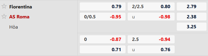 3/5 trận đấu gần nhất của Fiorentina có tối đa 2 lần lưới rung. 5/7 trận đã qua của Roma còn chứng kiến duy nhất 1 bàn thắng. Dù 3/5 màn so tài gần đây giữa đôi bên có tối thiểu 3 bàn thắng được ghi, nhưng màn so tài sắp tới khả năng cao sẽ không vượt mốc 2 lần lưới rung.