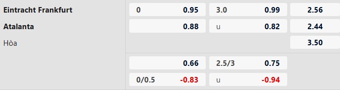 Dưới 3 bàn: 5/6 trận gần đây của Frankfurt chỉ có tối đa 2 bàn. 7/9 trận vừa qua của Atalanta cũng có không quá 2 lần lưới rung.