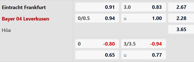 Frankfurt ghi bàn hiệp 1: Frankfurt đã ghi ít nhất 1 bàn trong hiệp 1 ở 5/6 trận gần nhất. Chưa hết, Frankfurt còn làm được điều đó trong 3/4 lần so tài gần đây với Leverkusen trên mọi đấu trường.