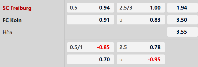 - Freiburg thắng 5, hòa 2, thua 3 trong 10 trận gặp Koln gần đây.