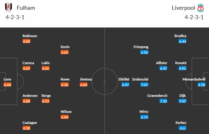 Trong khi đó, Fulham không phải là đội bóng dễ bị bắt nạt. Họ đang chơi khá tốt khi thắng 3, hòa 1/4 trận đấu gần đây tại giải Ngoại hạng Anh. Và với những kết quả tích cực ấy, đội bóng của HLV Marco Silva đã vươn lên vị trí thứ 11 tại bảng xếp hạng. Nhân đà thăng tiến, Fulham chắc chắn sẽ quyết tâm tận dụng triệt để lợi thế sân nhà để giành điểm trước Liverpool.