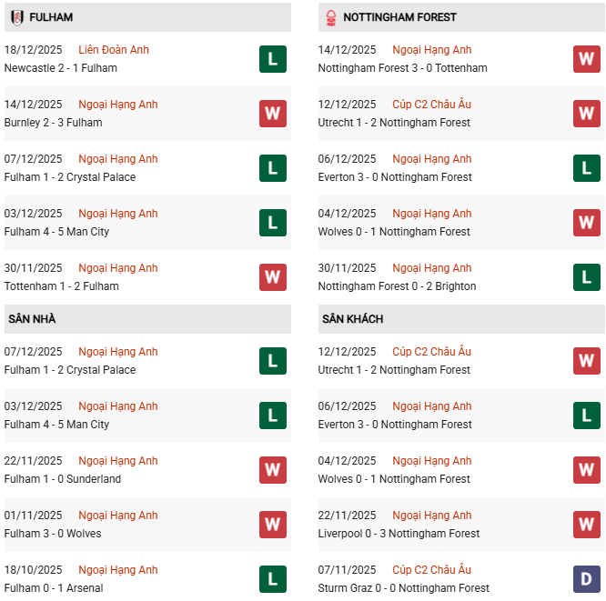 - Fulham thắng 8, thua 2 trong 10 trận gặp Nottingham gần đây.