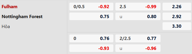 Kể từ khi Nottingham được lên chơi tại Ngoại hạng Anh ở mùa giải 2022/23, Fulham luôn là đối thủ rất kỵ rơ với họ. Cụ thể, họ đã phải nhận tới 5 thất bại và chỉ giành duy nhất 1 chiến thắng trong 6 lần chạm trán giữa đôi bên ở 2 mùa giải gần đây. Mặc dù sẽ phải hành quân đến Craven Cottage, nhưng trong bối cảnh đang có phong độ tốt hơn hẳn đội chủ nhà, Nottingham rất tự tin về việc giành ít nhất 1 điểm ở trận đấu tới.