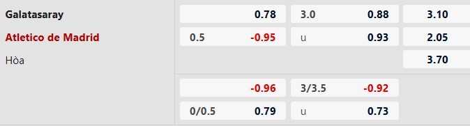 Tối đa 1 bàn hiệp 1: 3/4 lần chạm trán giữa 2 đội gần đây tại các giải chính thức chỉ có tối đa 1 bàn thắng trong hiệp 1. Tình trạng tương tự xảy ra ở 5/6 trận chính thức gần đây của Galatasaray và 4 trận gần nhất của Atletico.