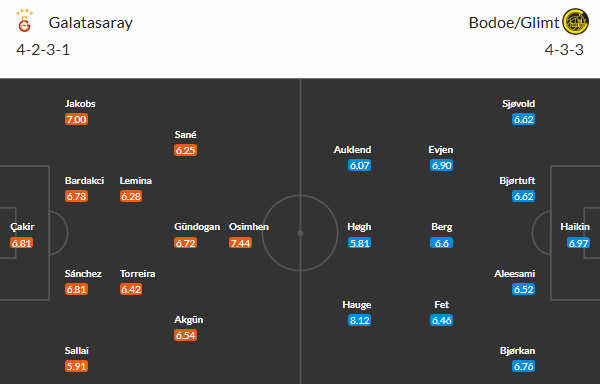 Sự khác biệt về đẳng cấp, kinh nghiệm thi đấu tại Champions League và đặc biệt là lợi thế sân nhà khiến Galatasaray được đánh giá cao hơn rất nhiều. Với phong độ ổn định cùng sự thăng hoa của Leroy Sané và các đồng đội, đại diện Thổ Nhĩ Kỳ hoàn toàn có thể giành một chiến thắng đậm trước Bodo Glimt.