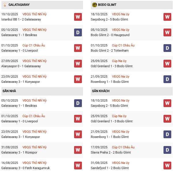 Trong 5 trận đấu gần nhất của Galatasaray, đã có tổng cộng 11 bàn thắng được ghi (trung bình 2,2 bàn/trận), trong khi con số của Bodo/Glimt là 19 bàn (trung bình 3,8 bàn/trận). Dựa trên số liệu này, khả năng trận đấu có trên 3 bàn thắng là rất cao.