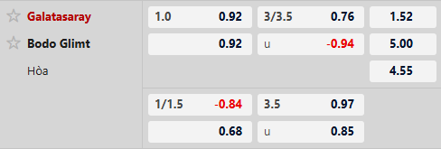 Dự đoán Galatasaray vs Bodo Glimt, 23h45 ngày 22/10, vòng Phân hạng Cúp C1 châu Âu, sân Rams Park. Sự khác biệt về đẳng cấp, kinh nghiệm thi đấu tại Champions League và đặc biệt là lợi thế sân nhà khiến Galatasaray được đánh giá cao hơn rất nhiều.