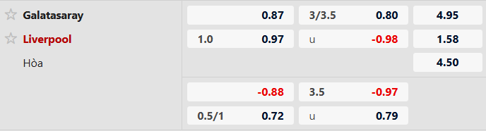 Galatasaray chắc chắn không phải đội bóng dễ bị bắt nạt nhưng sức mạnh và đẳng cấp của Liverpool là vượt trội. Do đó, dễ hiểu khi đội khách đang được đánh giá cao hơn cùng tỷ lệ chấp lên đến mốc 1 bàn. Khó tin nhưng The Kop chỉ mới thắng 1 lần sau 6 lần đụng độ Galatasaray trong quá khứ. Dù vậy, đây sẽ là thời điểm thích hợp để họ cải thiện thành tích đối đầu trước đối thủ này. Mức chấp không nhỏ nhưng Liverpool đủ sức thắng áp đảo và thắng luôn kèo châu Á.